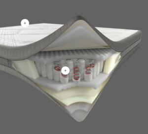 Système à ressorts Twin System : ressorts ensachés à double bobine concentrique, assurant un soutien progressif, précis et personnalisé
