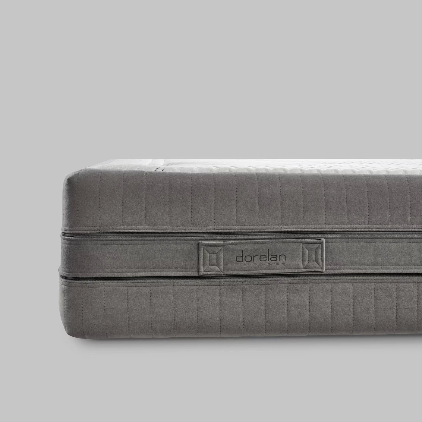 Finition : matelassage carré au design géométrique technique, système ZipFit entièrement amovible et lavable